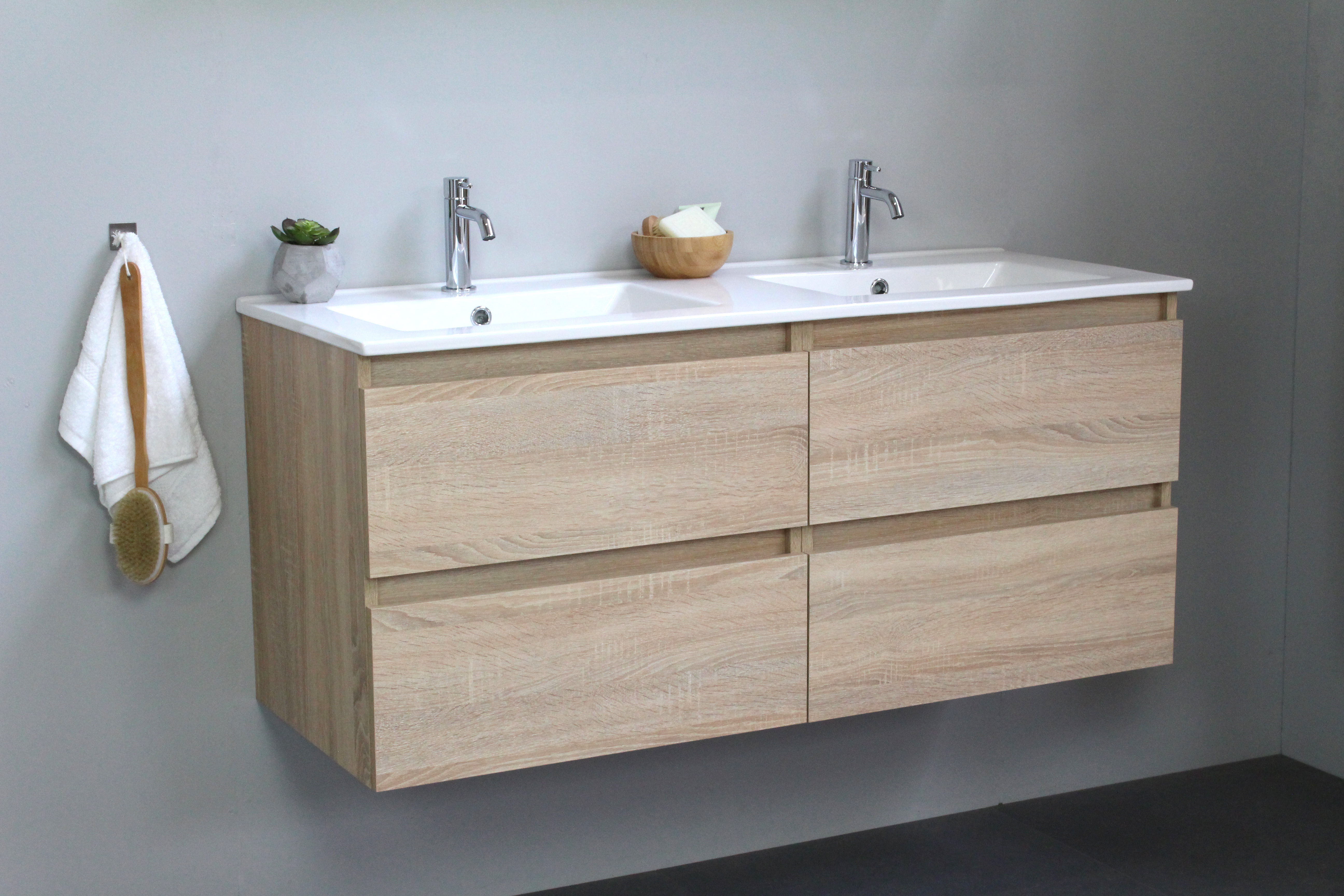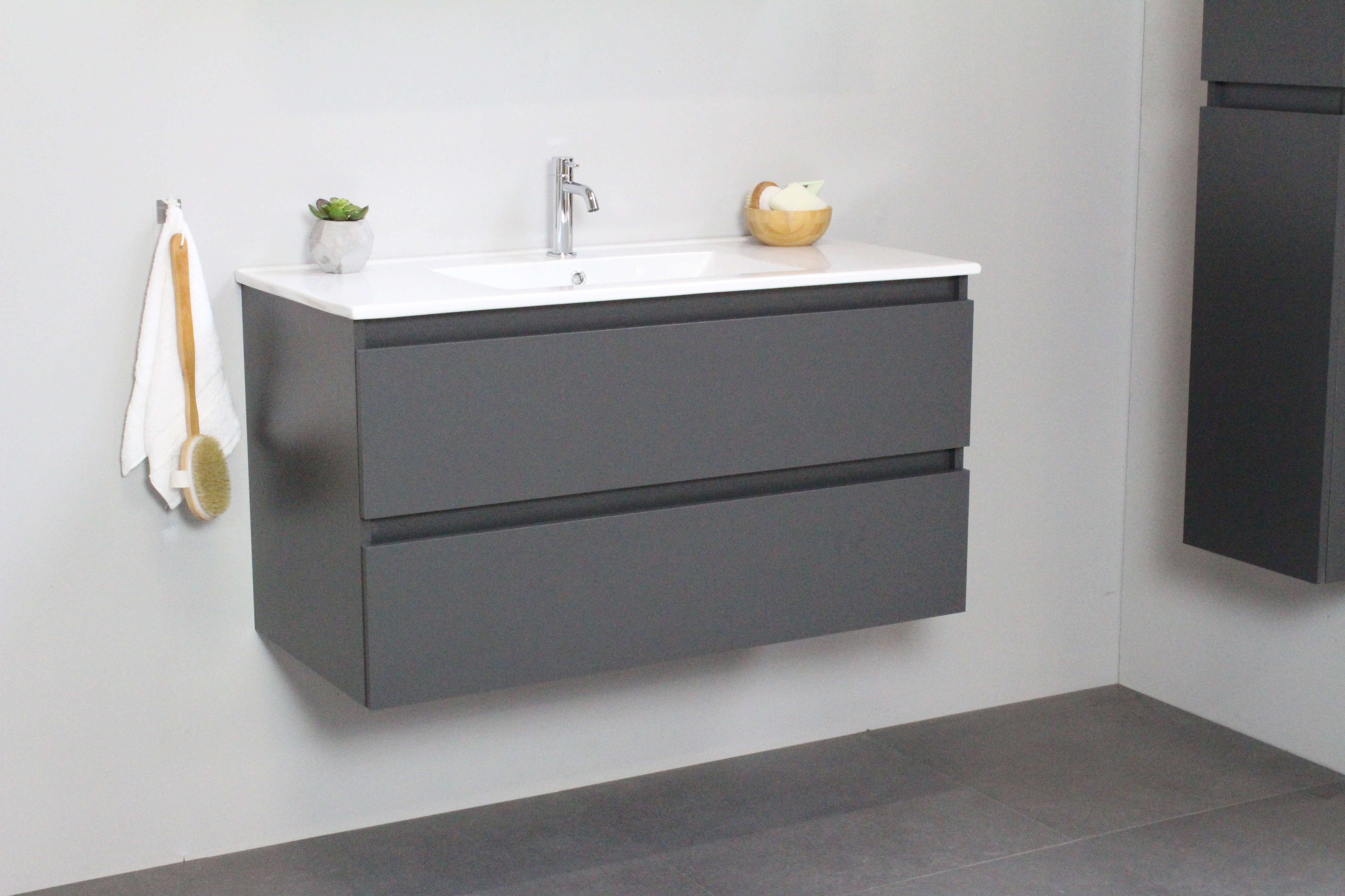 Serie A: is een meubel set met wastafel en onderkast met 2 lades of twee deuren en 4 verschillende kleuren. De wastafel is in 3 verschillende manieren te verkrijgen, verschillende maten en opties zonder kraangaten of 1 of 2 kraangaten.